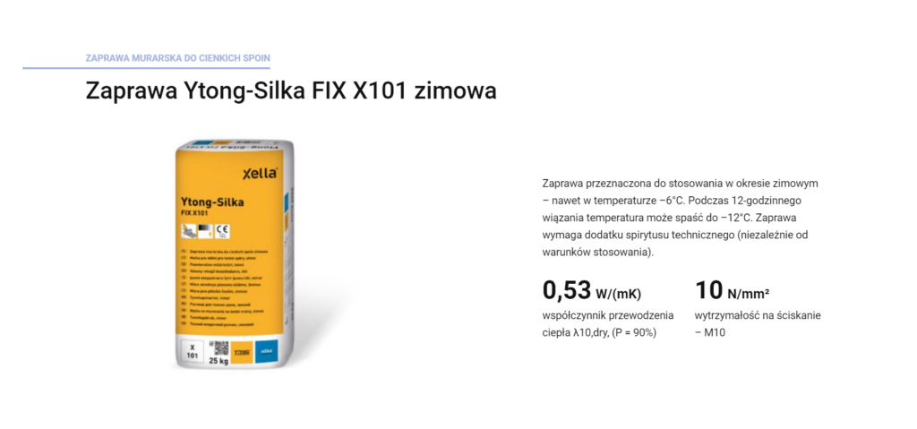 Ściany zewnętrzne z bloczków Ytong charakteryzują się najwyższą izolacyjnością termiczną wśród materiałów murowych dostępnych na rynku. Warunkiem uzyskania jednolicie „ciepłego” muru jest zastosowanie odpowiedniej zaprawy murarskiej. Zaprawy Ytong pozwalają na wykonanie spoin o minimalnej grubości, nawet poniżej 1 mm, zapewniając przy tym odpowiednie parametry nośności.